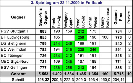 Ergebnisse 3. Spieltag