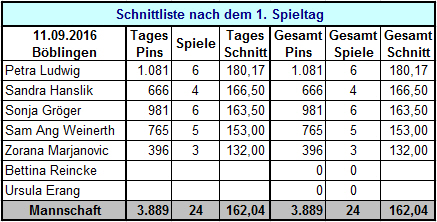Ergebnisse 1. Spieltag