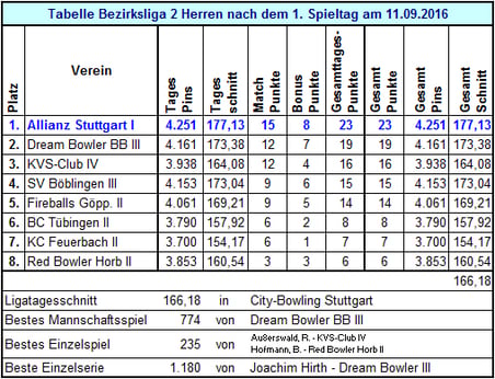 Ergebnisse 1. Spieltag