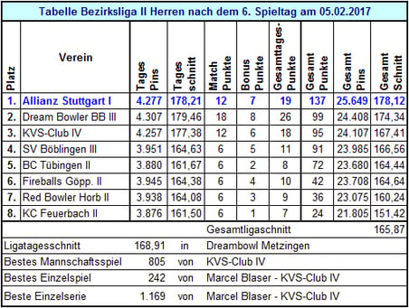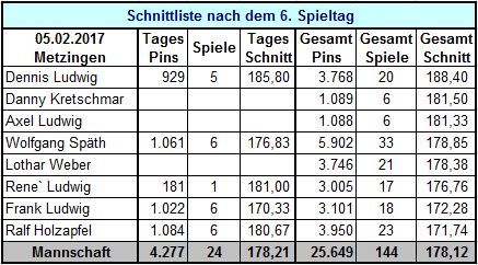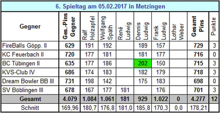 Ergebnisse 6. Spieltag