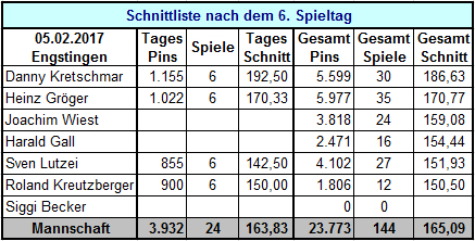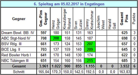 Ergebnisse 6. Spieltag