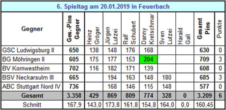 Ergebnisse 6. Spieltag